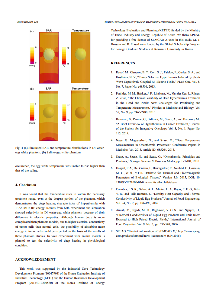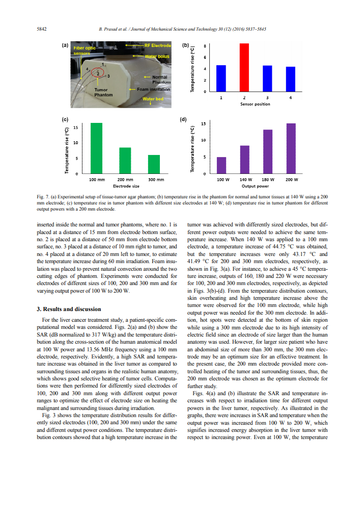 적절한 크기의 전극과 다양한 출력전력으로 종양세포의 온도를 선택적으로 증가시킬 수 있음.